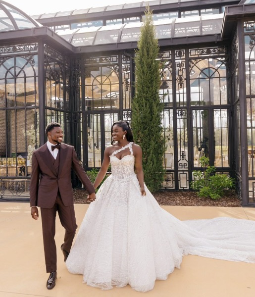 Noah Lyles And Junelle Bromfield Deliver A Fashion-Forward Georgia Wedding Rooted In Black Elegance. Image Source: Getty Images