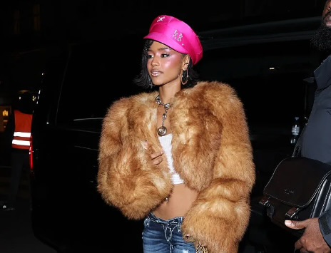 The real luxury moment came with her outerwear: a lush, nude-toned fur jacket that added instant glamour and texture. Draped effortlessly over her shoulders, the fur delivered that unmistakable high-low contrast the ’90s did so well, mixing casual denim with indulgent materials. It was the kind of styling choice that feels instinctive, not forced, and elevated the entire look from retro to runway-coded.