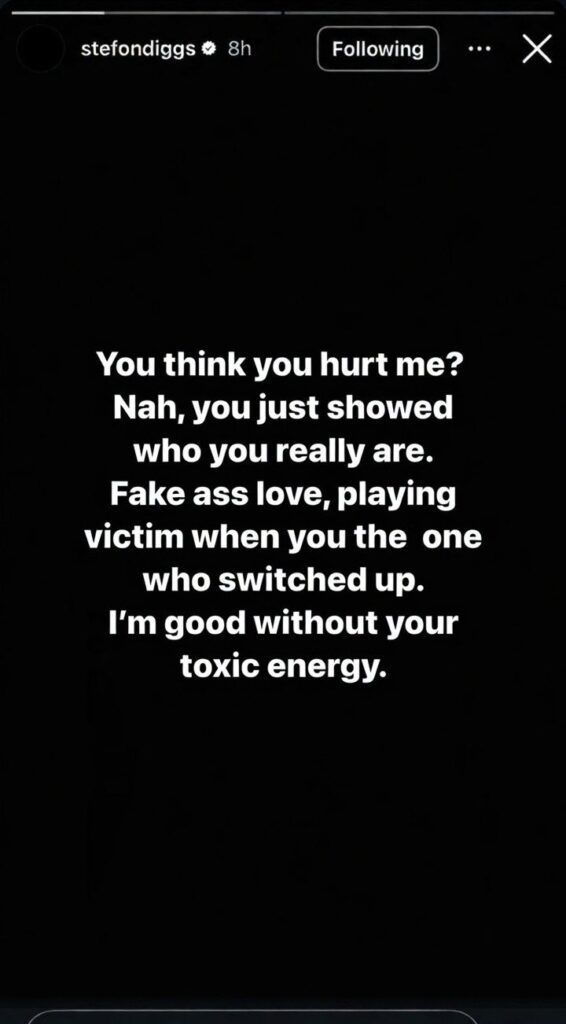 In the message attributed to him, Diggs expressed frustration, writing about recognizing someone’s true character and distancing himself from what he described as negative energy. The post added to the narrative that tensions between the two had escalated.