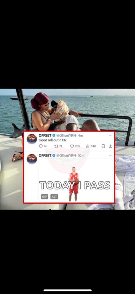 On June 1st, in response to photo dumps from both Stefon and Cardi, Offset apparently couldn’t resist a bit of shade. He posted two tweets that were quickly deleted, but not before the internet caught them. One was a gif of a basketball player throwing a ball with the caption, “Today I pass.” He then followed up with, “Good rollout and PR.”