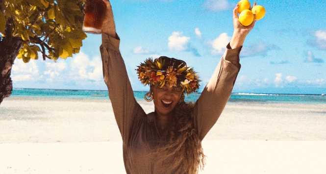 On April 23, the singer shared a carousel of images to commemorate the 2016 release. In the opening photo, Beyoncé posed on the beach in a beige long-sleeve jumpsuit cinched at the waist with a brown leather belt. She styled the look with oversized gold hoop earrings and a flower crown, holding a full bottle of her SirDavis whisky in one hand while raising three lemons in the other. The visual detail sparked conversation in the comments, with fans suggesting the lemons could hint at the next installment of her ongoing album trilogy, widely referred to as Act III, though no official title or release date has been confirmed.