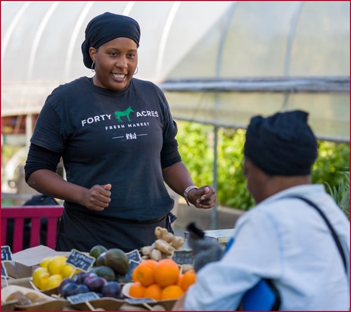 She sees Forty Acres Fresh Market not just as a store, but as part of a broader movement toward economic ownership, self-determination, and community investment — ideals tied to the original promise that inspired its name.
