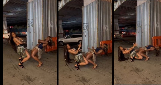 The #LowChallenge is gaining momentum, with people worldwide attempting to replicate her jaw-dropping moves. In the trending video, Ciara strikes a dynamic pose outside, lying on her side and supporting her upper body with her left elbow. Her right arm is stretched out, hand open, reaching towards another woman beside her, who is crouched down and leaning forward with an arched back.