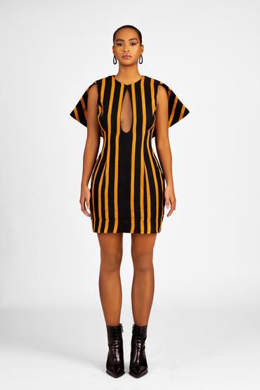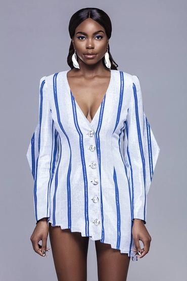 Her collections combine elegant, feminine designs with traditional materials such as cotton and faso dan fani, a handwoven textile from Burkina Faso.