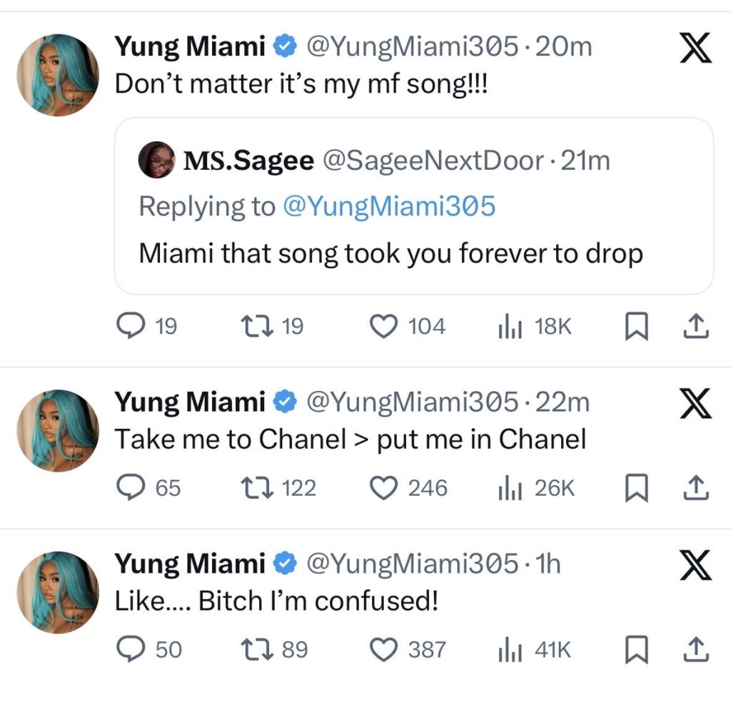 The back-and-forth heated up when a follower suggested that Yung Miami was to blame for delaying her release. She fired back without hesitation: “Don’t matter, it’s my mf song!!!”