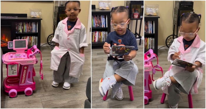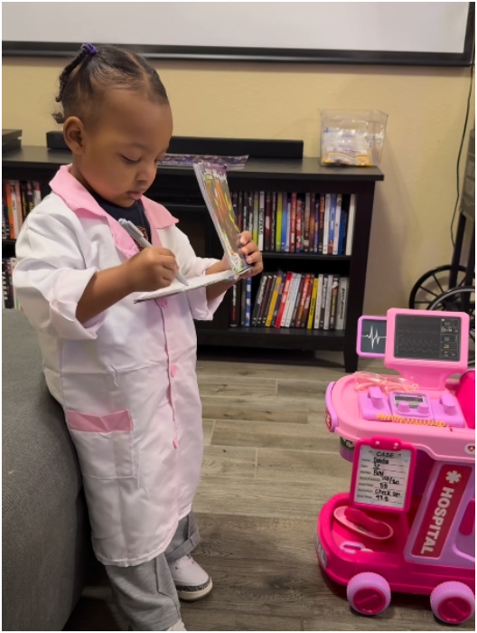 The now-viral clip features a little girl affectionately dubbed “Doctor Autumn,” dressed in glasses, a neatly buttoned doctor’s coat, and holding a clipboard as she sits across from her dad like a seasoned physician. Calm, focused, and clearly in charge, the toddler runs what looks like a full medical consultation — and she is not playing.