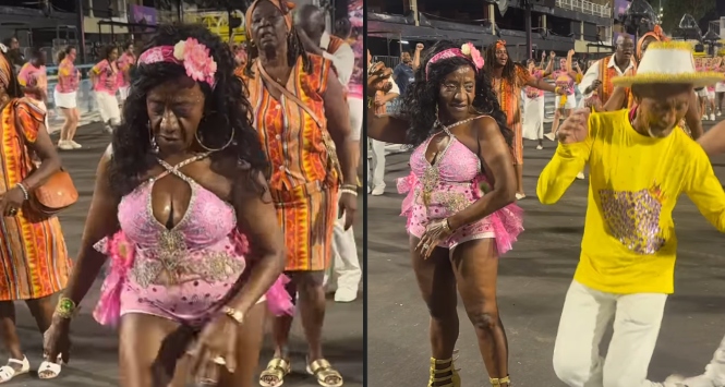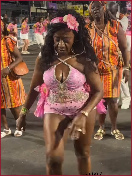 The viral video, shared by União do Parque Acari’s supporters, shows a senior woman—smiling widely and dancing with remarkable strength—moving confidently down the parade avenue as part of the samba school’s passista troupe.