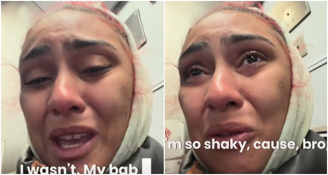 In the emotional video, the woman recounts being on an E train at Roosevelt Avenue station with her baby when a man allegedly began threatening passengers.