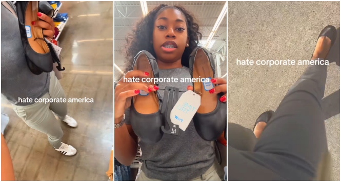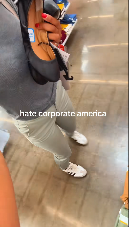 Visibly irritated, she filmed herself at Walmart replacing her shoes, describing the moment as her breaking point with outdated corporate standards.