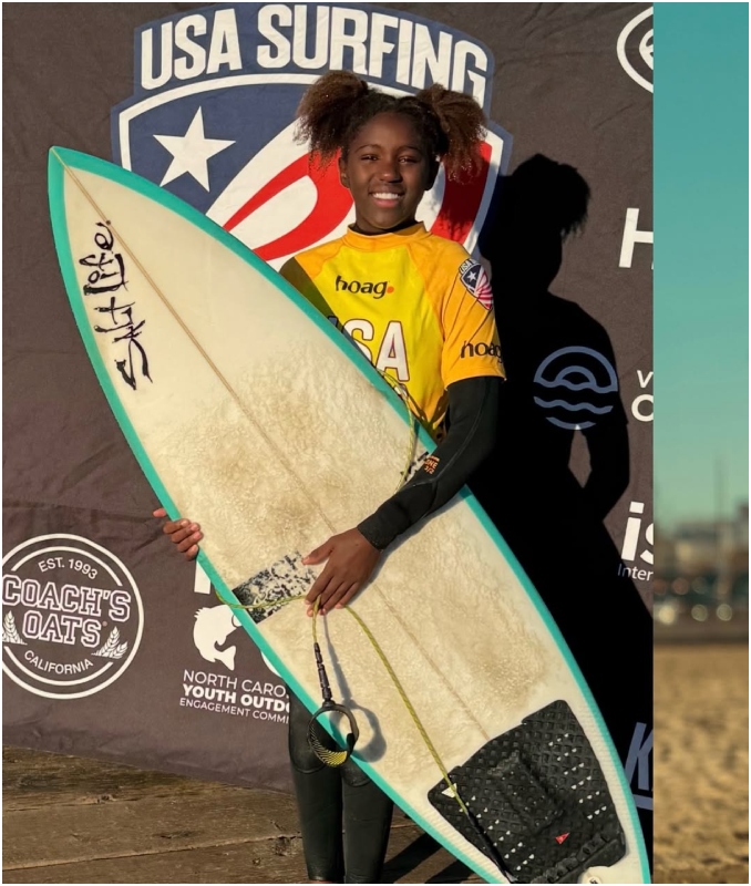 The Oceanside, California–based surfer, drummer, and young writer has emerged as one of the most promising youth surfers in the U.S., earning national recognition for her competitive success and her growing presence in Southern California’s surf scene.