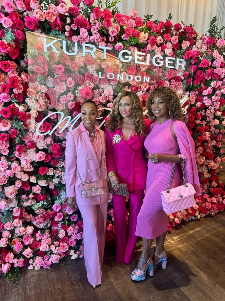 Fashion remained the focal point throughout the afternoon. Lela Rochon opted for a blush satin gown with long sleeves and a bow detail at the neckline, pairing the look with gold accessories and a metallic handbag. Vanessa Bell Calloway stepped out in a bright pink mini dress with a subtle shimmer, styling it with a floral handbag from the Kurt Geiger x Tina Knowles collection and multicolored heels. Holly Robinson Peete embraced a coordinated look, wearing a hot pink cardigan layered over a fitted midi dress, finished with platform heels and a matching handbag from the same collaboration.