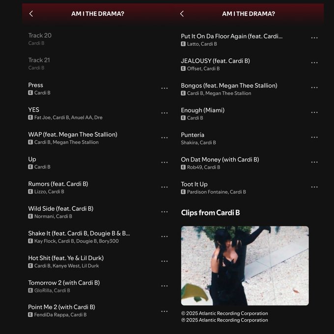 Though Cardi hasn’t personally dropped the official tracklist, the internet never sleeps. Fans on Twitter have uploaded what appears to be the full tracklist for Am I The Drama? And if it’s legit? Whew. We’re in for a ride.