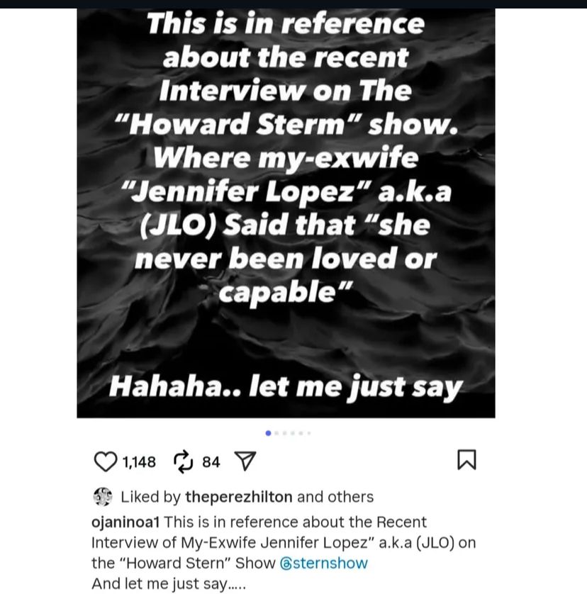 While J.Lo intended her words to be introspective, they didn’t sit well with Ojani. He pointed out, “You have been loved a few times. You’ve been married four times and had countless relationships in between.”