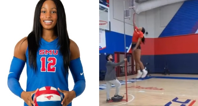 A Southern Methodist University volleyball player is drawing national attention after video footage showcased what experts are calling one of the most remarkable athletic feats in women’s sports.