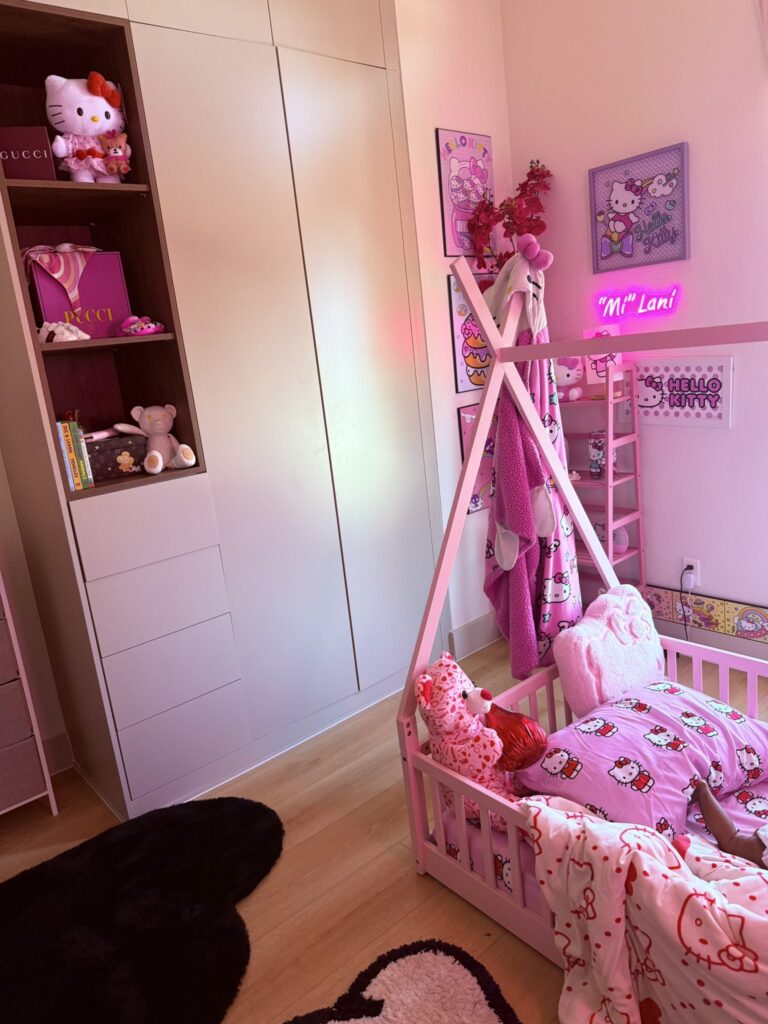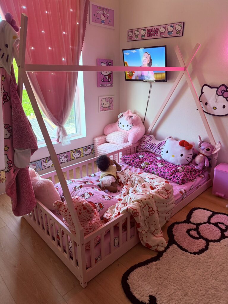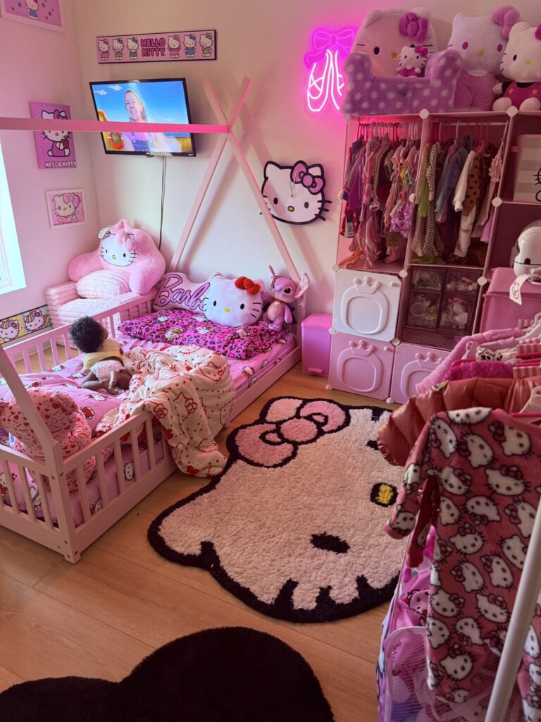 Not long after introducing Mi’Lani to the world, Asian Doll offered a glimpse into the space she created for her daughter. The room reflects a clear vision, built around a full Hello Kitty theme that blends softness with structure. Pink tones define the space, from the walls to the decor, creating a consistent and calming atmosphere.