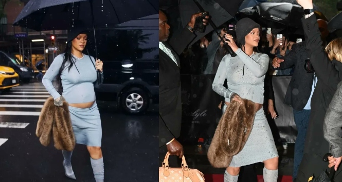 The third pregnancy news actually broke a little early, thanks to Rihanna’s photographer, Miles Diggs, who shared a stunning photo of the pregnant singer in the rain, her baby bump on full display, just before the Met Gala.