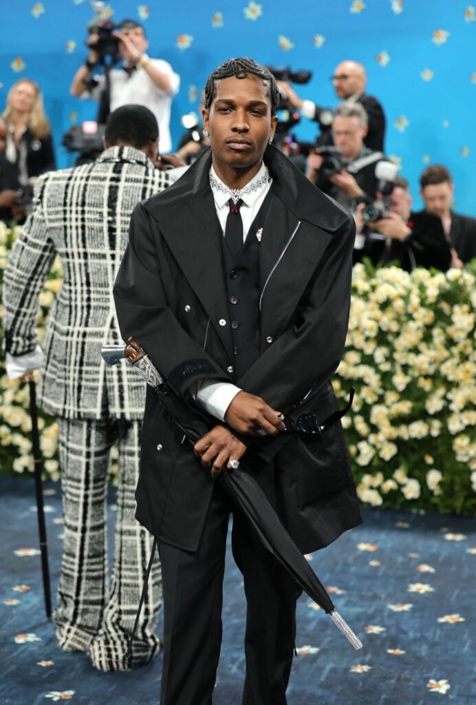Meanwhile, A$AP Rocky rocked a bespoke suit of his own design, further cementing the couple’s place as one of fashion’s most innovative power duos, even if they didn’t pose together this time.