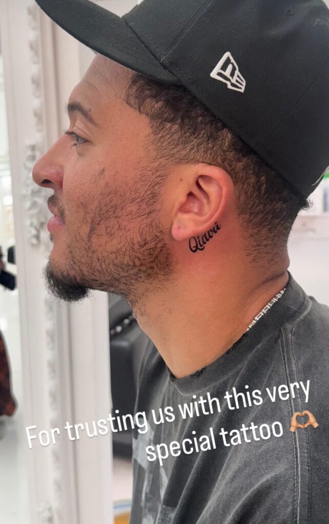 Over the summer, the two were spotted at Apollo Tattoo & Piercing Studio in Santa Monica, and witnesses say Sancho left with fresh ink. Right behind his left ear, in delicate cursive, now sits the name “Qiava.” For those who know their Saweetie trivia, that’s her middle name.