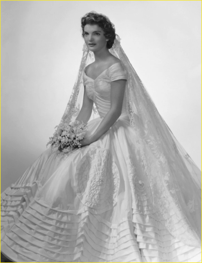 This bridal portrait of Jackie Kennedy captures the finery of her Ann Lowe-designed wedding dress. Bachrach/Archive Photos/Getty Images