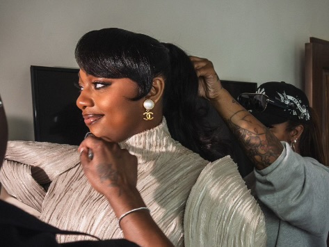 Behind the scenes, makeup artist Tai Simon and hairstylist Keita Moore worked in sync to create a beauty moment that honored Joy’s artistry while letting her natural elegance lead.