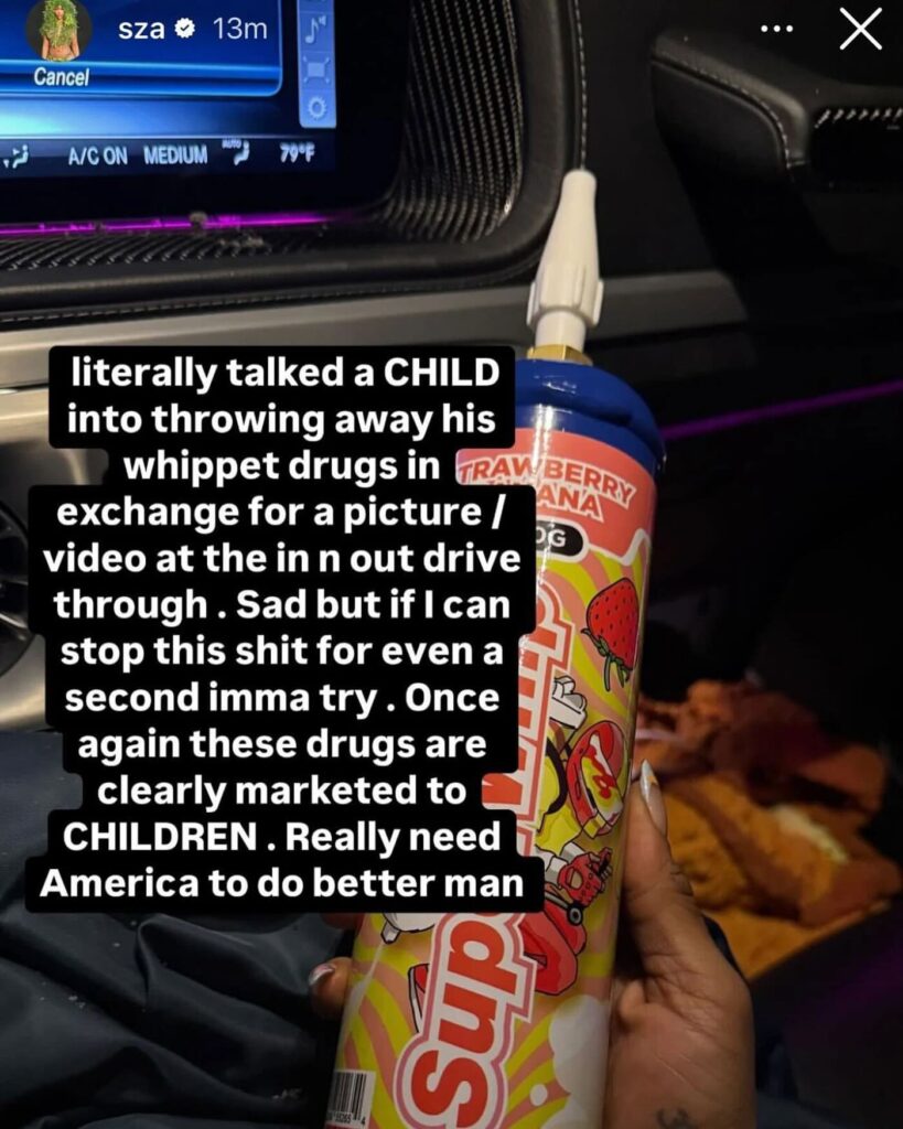 SZA took to Instagram to share how she convinced a literal child to ditch his nitrous oxide canister in exchange for a pic with her.