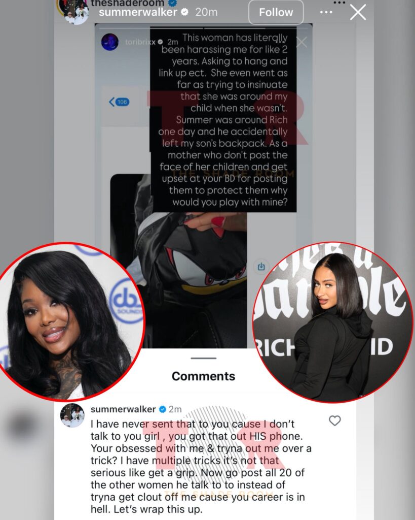 Tori claims that the conflict dates back two years, accusing Summer of harassing her throughout this time. She expressed her frustrations on Instagram Stories, asserting that Summer has been attempting to undermine her relationship with Rich The Kid while pretending it’s all in good fun.