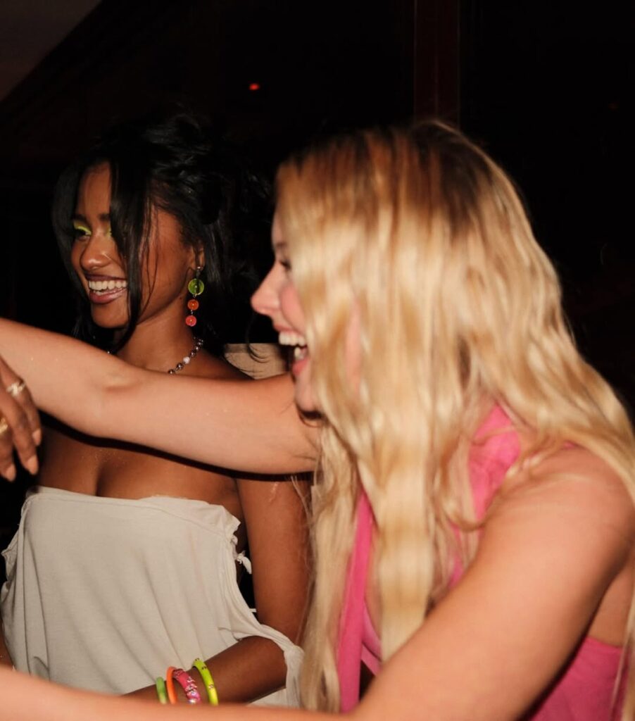 Tyla’s birthday look perfectly reflected the mood. She wore a crisp white mini dress that was simple from the front and unforgettable from the back, with a clean, backless cut that added just enough drama. The dress hugged without trying too hard, letting confidence do the work. Neon accessories brought playful contrast, especially her mismatched heels in bright green and red, a bold choice that somehow felt effortless.