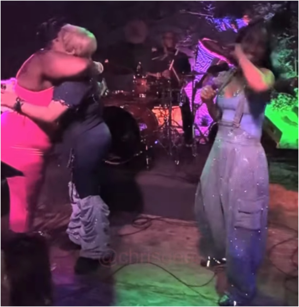 “We were in the van coming here and were like, ‘Wait a minute, we hear our song,’” Chilli explained in an Instagram video. “So, we just pulled over and felt like crashing with you guys.”