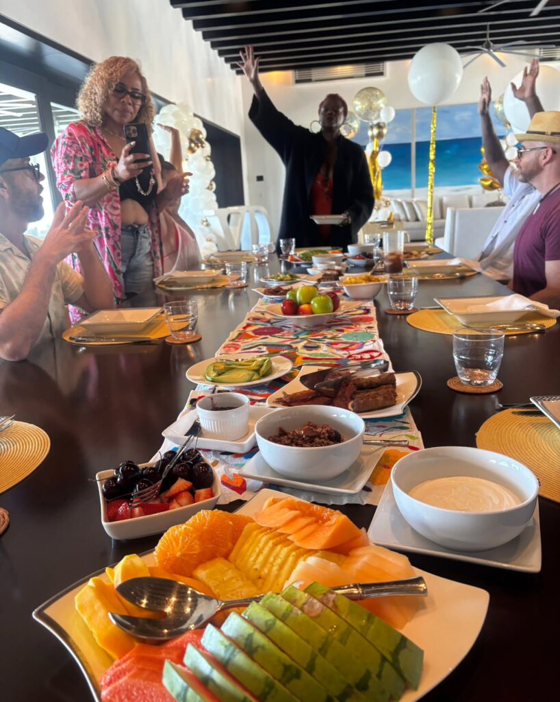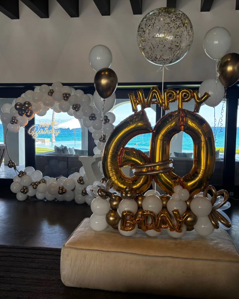 In a carousel post, Davis gave fans a glimpse into her fabulous celebration. The first photo shows her enjoying a dip in the pool with the sun beaming on her face, while another image shows the words “Happy B-Day” in gold and white balloons along with the number 60. She also showed off footage of her brunch before posting a video of her loved ones singing to her as she was presented with a birthday cake topped with strawberries and sparklers.