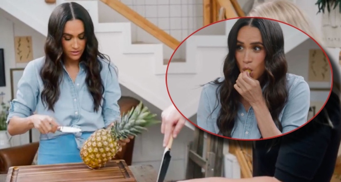 On May 30, the Duchess of Sussex shared a brief clip from her Netflix series, “With Love, Meghan”. In the scene, she was chopping fruit with wellness expert Randi Karin when she casually revealed what she called her pineapple “hack.” Instead of cutting the pineapple into traditional chunks, Meghan demonstrated how to slice it diagonally to create bite-sized wedges. She appeared genuinely enthusiastic about the technique, saying, “When nature has given you all the cues on how to have a perfect taste of something!”