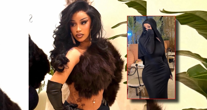 Even beneath the elegant covering, Cardi B’s glam makeup was on point, featuring sharply defined brows, perfectly contoured cheeks, and a warm lip color that stood out against the sleek black fabric. As a final edgy touch, her long, sharply sculpted nails showcased that she can maintain her signature aesthetic regardless of the dress code.