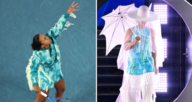 Naomi Osaka arrived on the court at the 2026 Australian Open in a custom Nike outfit designed by herself, inspired by a jellyfish with a butterfly nod to her 2021 win.